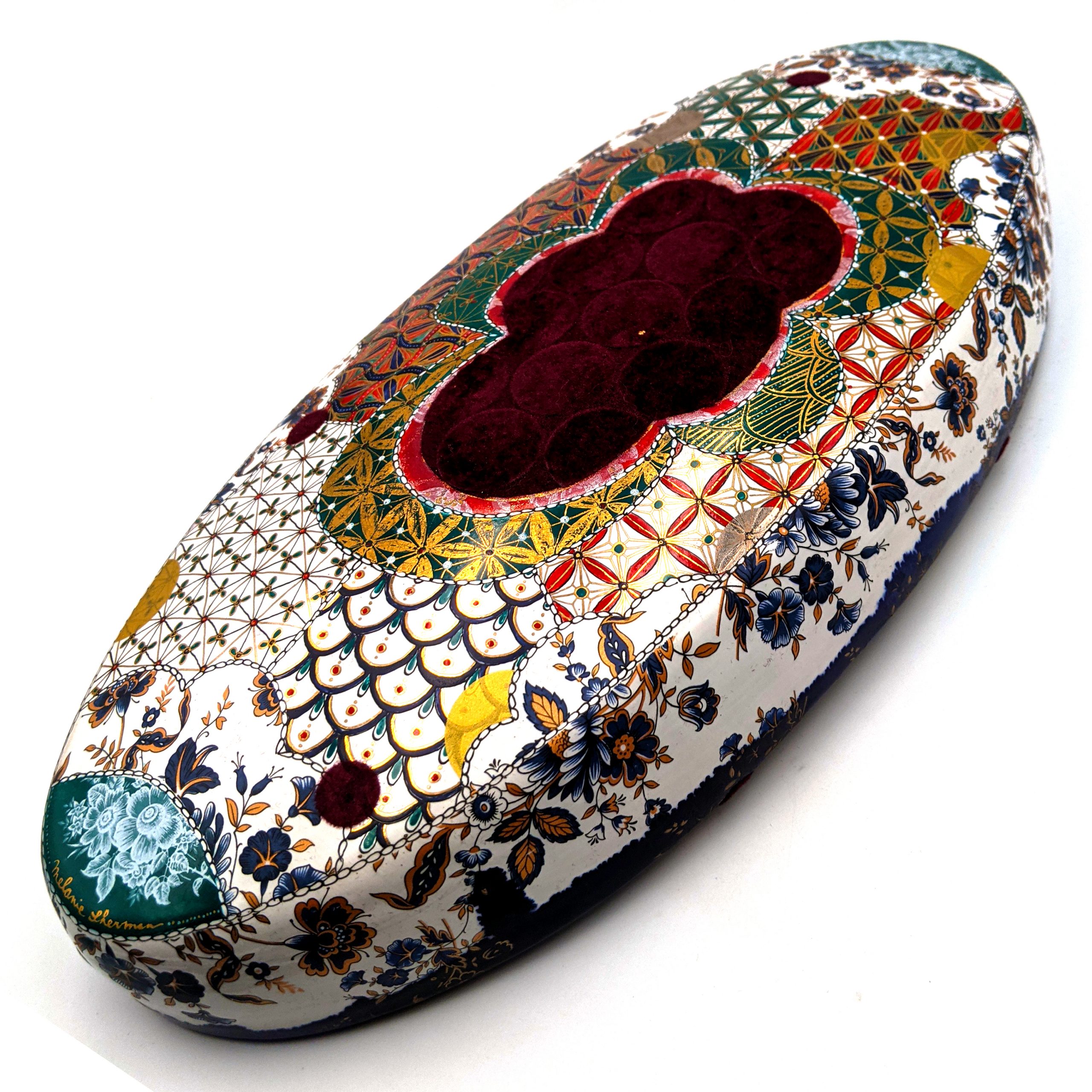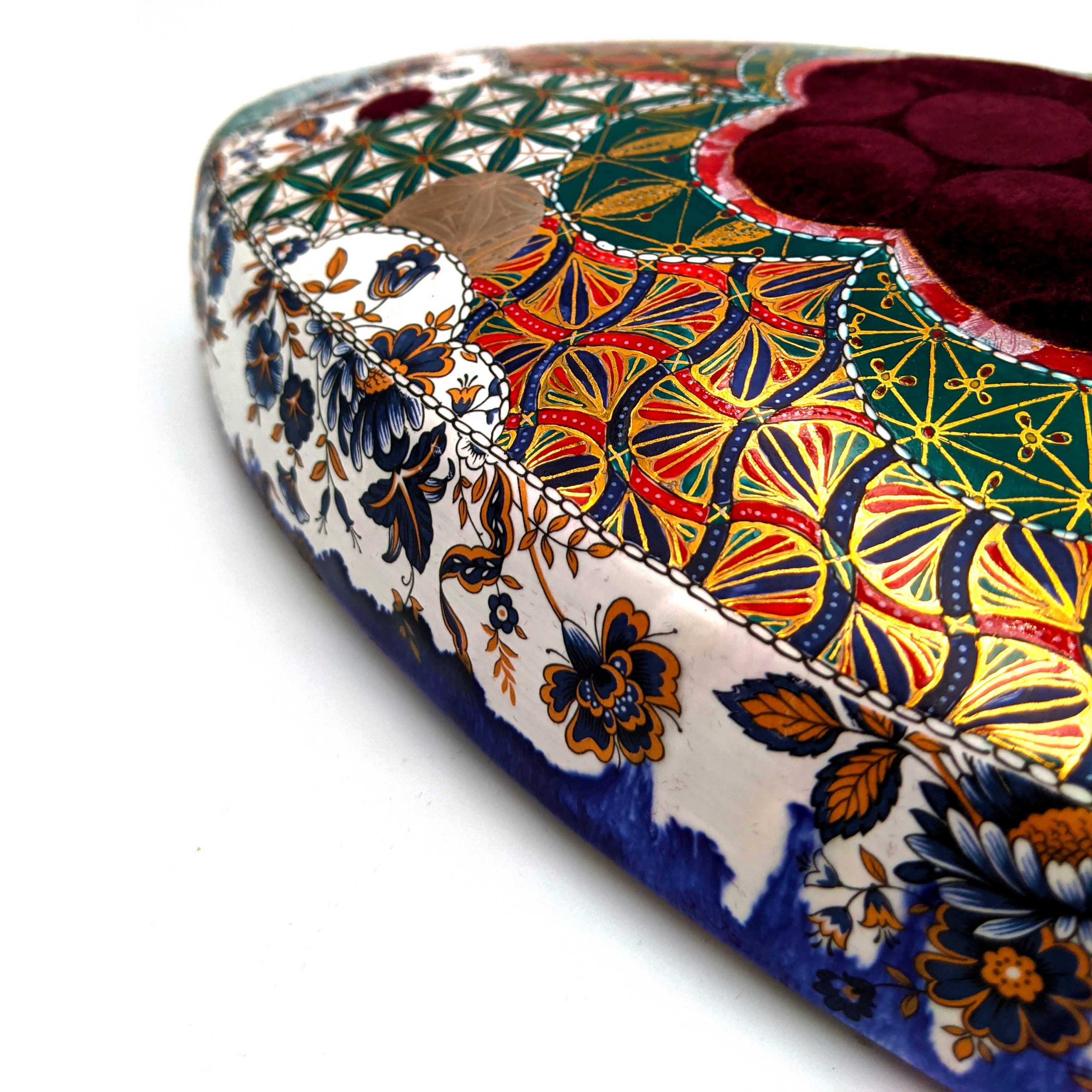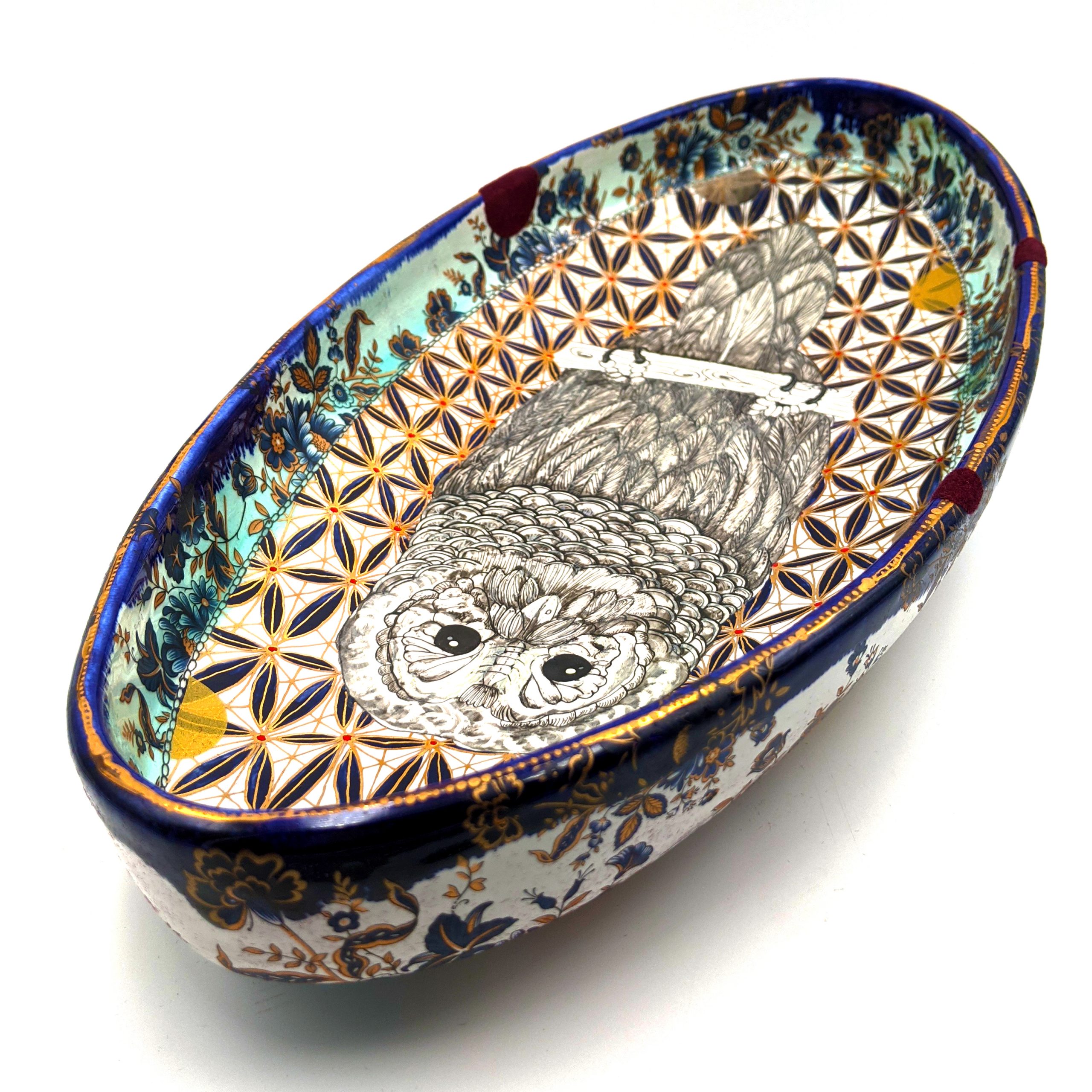 Materials: Porcelain, Chinapaint, German Gold Luster, Flocking, Gold Leaf