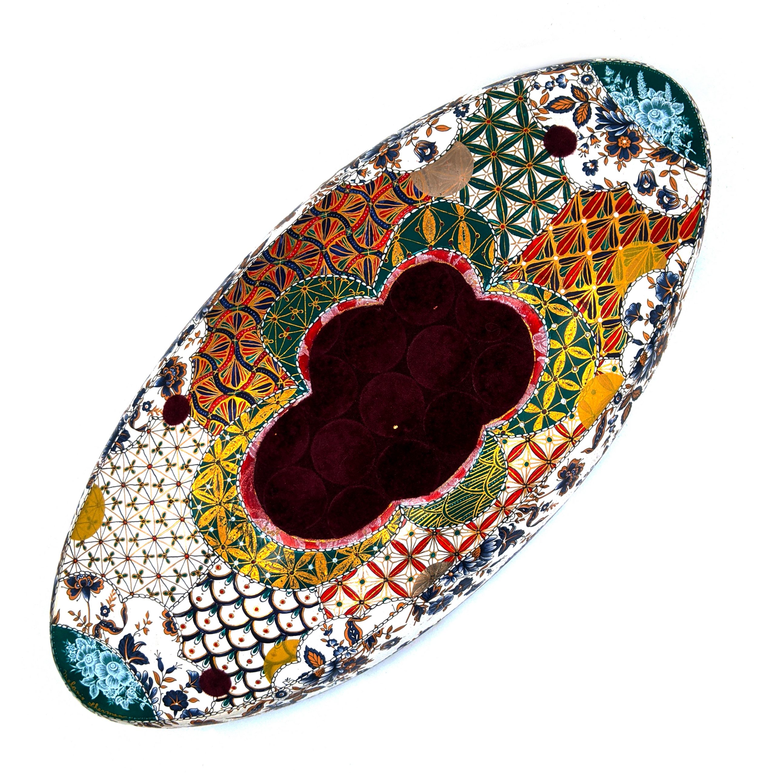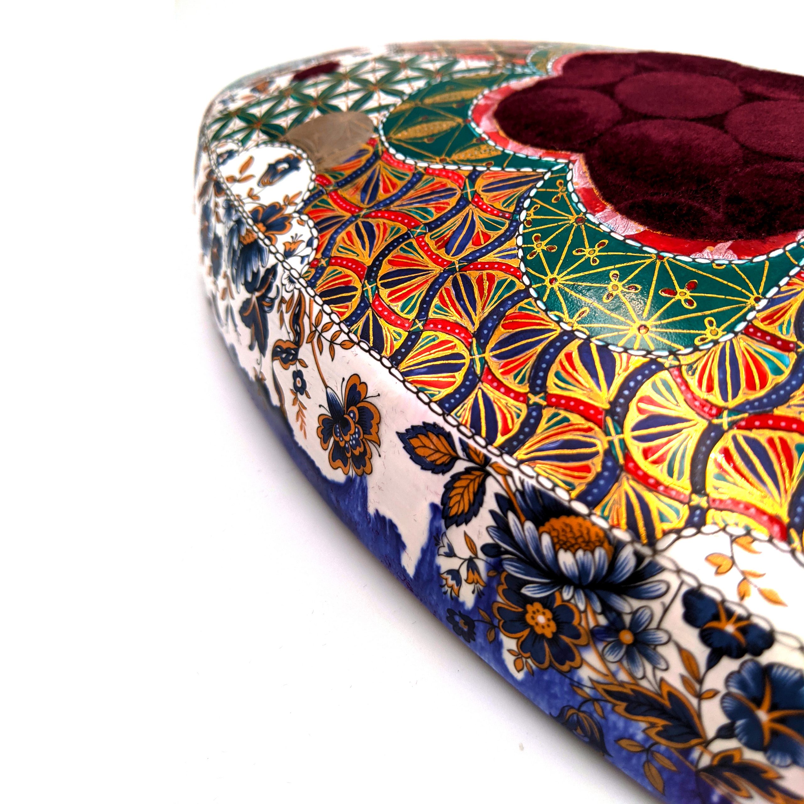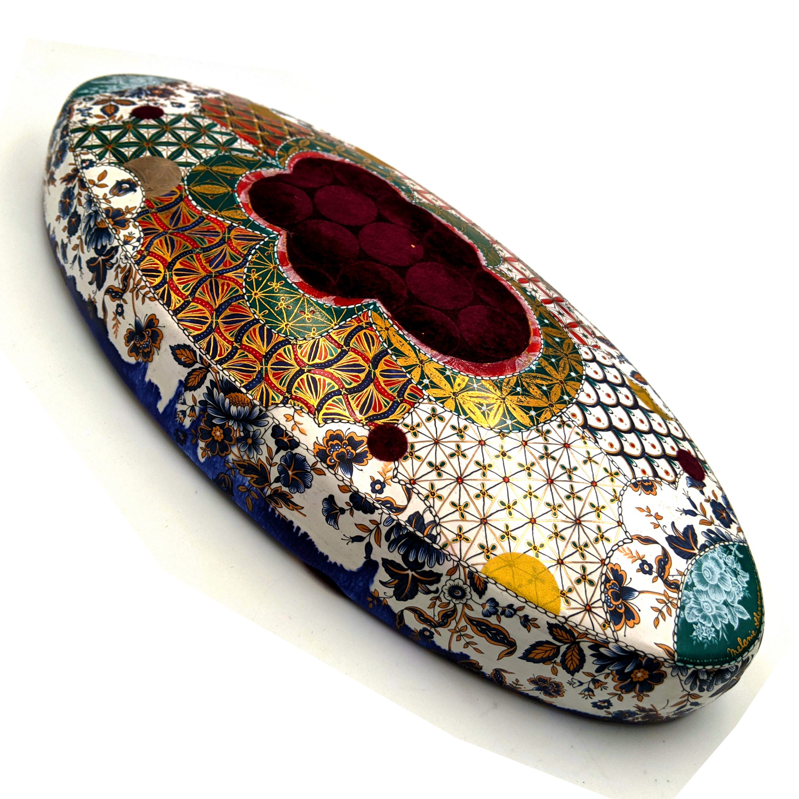 Materials: Porcelain, Chinapaint, German Gold Luster, Flocking, Gold Leaf