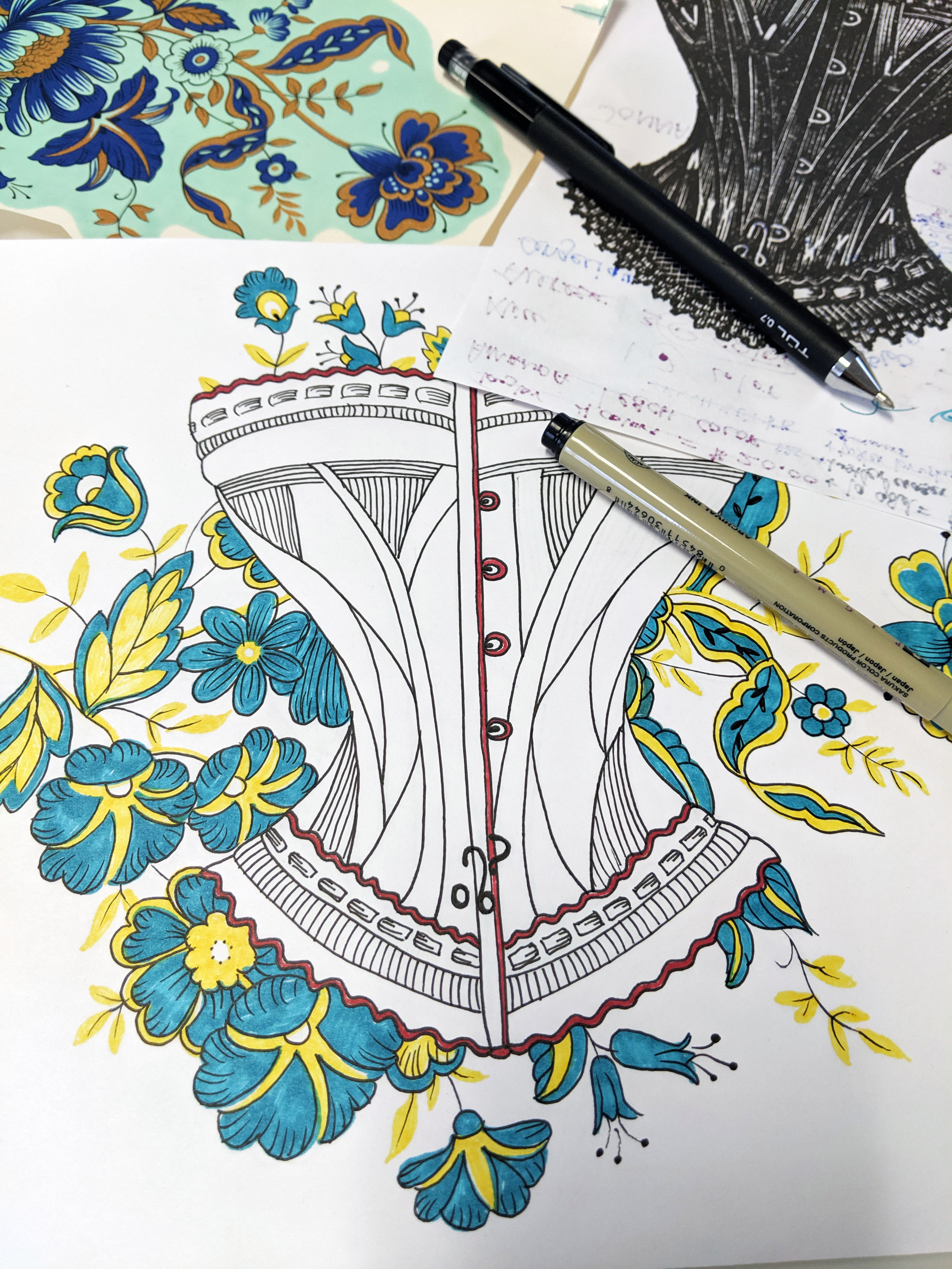 A preview of a sketch for a wallpaper design for HORROR VACCIU at The Northern Clay Center in Minneapolis. It opened on Friday, September 20th with a FREE lecture on October 10th in the @northernclaycenter library at 6 pm. A walkthrough of the exhibition will be live-streamed on #NCC Instagram stories on Friday, October 11th at noon (watch during your lunch break!), and a reception that night! Thanks to Jill @whistlepigstudio for curating #horrorvaccui – I can’t wait to see it all!!This show has been so much fun to plan and create for and I am accompanied by so many wonderful artists @virgilortiz @babygrapesdesigns @vzimany @lindsay_s_montgomery @payusova @molly_uravitch @ardmore @ardmoreceramicart @p.coughlin @benjieheu #womenceramicartists #pottersofinstagram #moderncraft #modernceramics #craftswomen #kcmade #germanjewelry #24kgold #kansascityartist #blueflowers #madeinkc #summerinthecity #summerinkc #cityoffountains #bluegold #keramik #ceramique #porcelainjewelry #vintagetableware #vintagedecals #stokeontrent #goldblue #flowerstagram #blackporcelain #blackgold #vintagedinnerware #vintage #gemstones